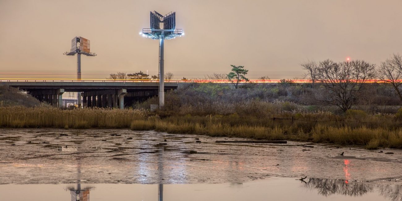 Die Meadowlands von New Jersey erstrecken sich als weite Gezeitensümpfe zwischen den Hackensack und Passaic Flüssen. Seit dem 18. Jahrhundert wurden sie durch Rodungen, Deiche, Eisenbahnen und Müllberge tiefgreifend verändert. Die fotografische Serie dokumentiert diesen Raum, in dem sich industrielle Eingriffe und Reste wilder Sumpfnatur überlagern – ein Ort, an dem sich die Handschrift des Menschen und die Widerstandskraft der Natur sichtbar begegnen.