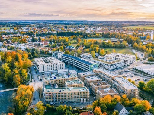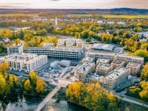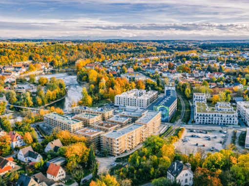 Das Quartier Am Papierbach knüpft durch den Lady-Herkomer-Steg direkt an die lebendige Altstadt Landsbergs an und schafft durch sein eigenes Angebot die beste Grundlage für seine Bewohner*innen und Geschäftstreibenden – eine Lage zum Verlieben.